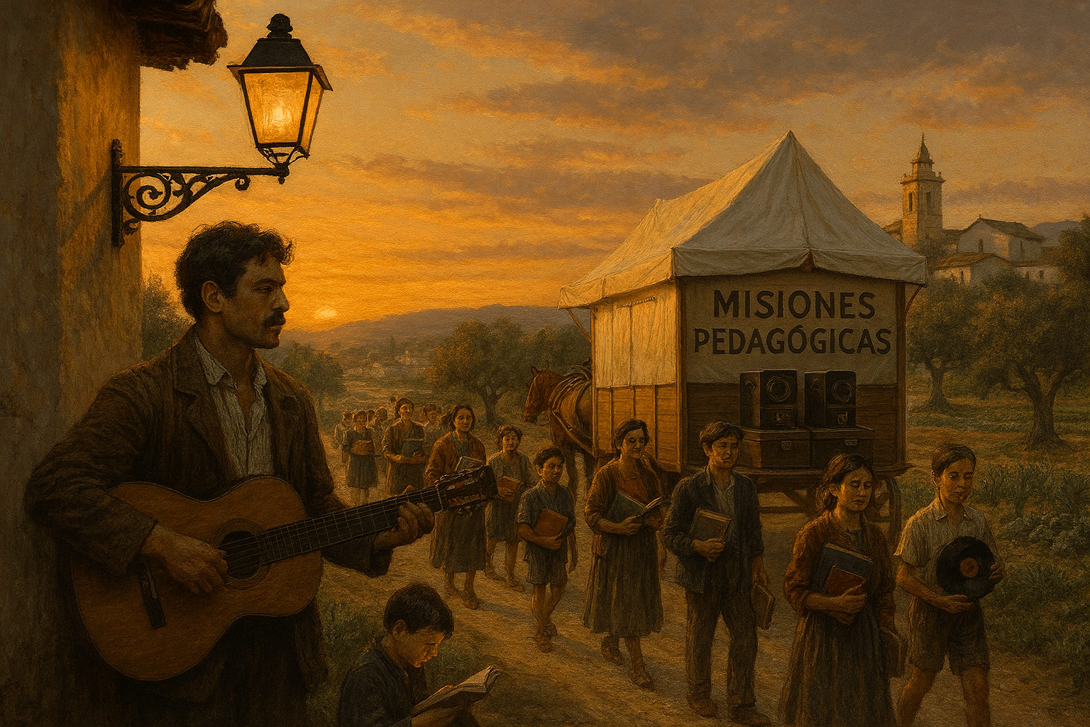 LAS MISIONES PEDAGÓGICAS (1931-1936) fueron un ambicioso proyecto cultural y educativo impulsado por la Segunda República Española y el Patronato dirigido por MANUEL BARTOLOMÉ COSSÍO, para devolver al pueblo lo que es del pueblo, con el fin de llevar el progreso, la cultura y la educación a las zonas rurales más olvidadas y analfabetas.